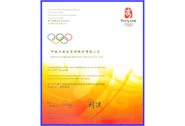Letter of Appreciation from the Beijing Olympic Committee and the I.O.C.
